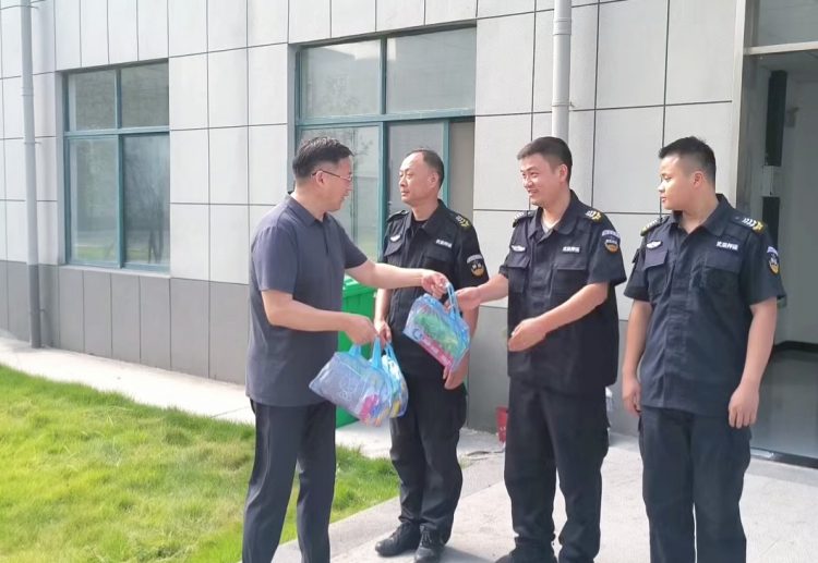 淮北大地連日高溫,驕陽(yáng)似火,酷熱難耐。為切實(shí)保障在高溫環(huán)境中堅(jiān)守崗位的一線安保人員身體健康和勞動(dòng)安全,7月23日上午,集團(tuán)公司黨委委員、副總經(jīng)理張立哲同志一行分別前往保安公司金融科技服務(wù)產(chǎn)業(yè)園及人防電廠2號(hào)門駐點(diǎn),開(kāi)展夏季送清涼慰問(wèn)活動(dòng),為押運(yùn)人員和人防保安送去了防暑降溫物資和誠(chéng)摯的關(guān)懷。